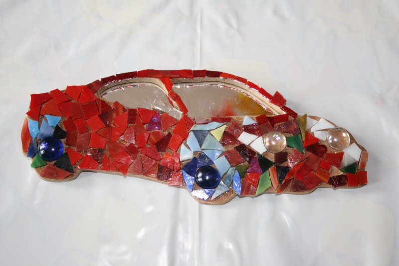 Mozaïeken kan in combinatie met vele voorwerpen. Denk daarbij aan een eigen naambordje maken of een eigen spiegel of een auto creatief “pimpen”. Prijs verschilt natuurlijk per keuze. Hieronder enkele voorbeelden: