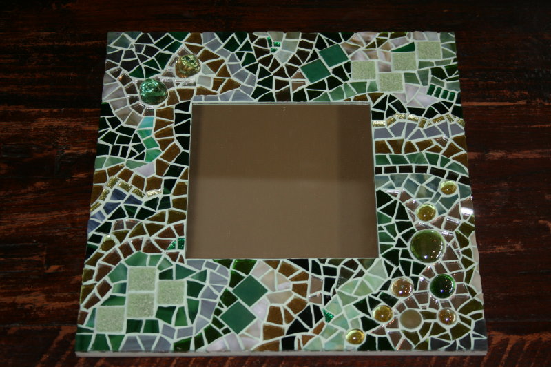 (o.a.druppels, 1x1 en 2x2 mozaieksteentjes, spiegelstukjes)