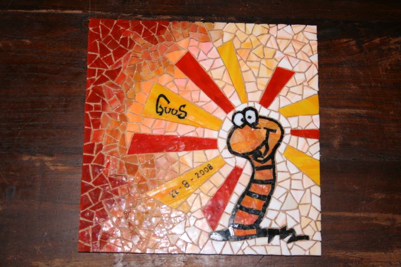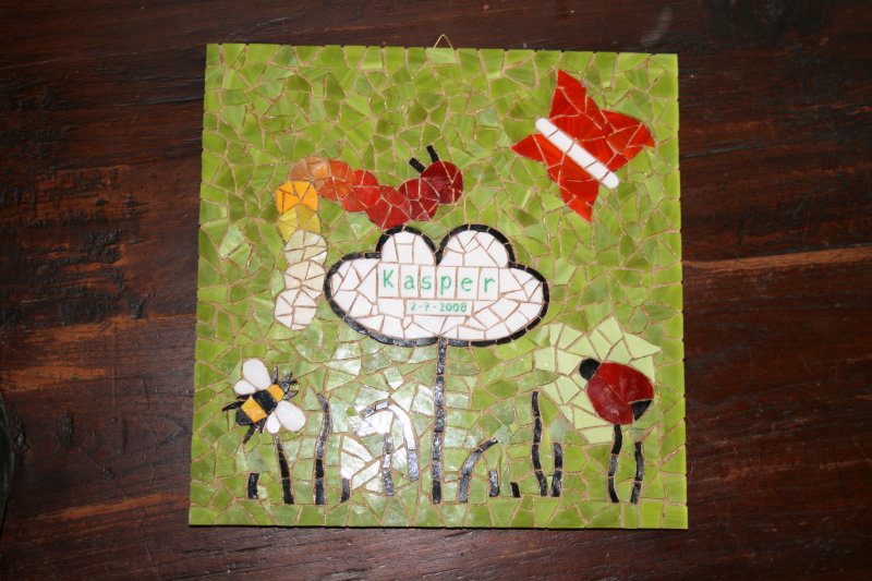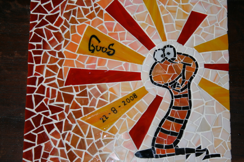 Regelmatig werk ik in opdracht. Dit kan uiteenlopen van het maken van een geboortetegel, het vormgeven van een spiegel in speciale kleuren tot het uitvoeren van een specifieke project opdracht. Bij het laatste kun je denken aan een wandmozaïek, een vloermozaïek of bijvoorbeeld een abstract voorwerp in een tuin. Ik werk steeds meer met gebruikte materialen om nieuwe creaties te maken. Binnenkort zal ik ook dit deel van mijn werk op deze site tonen. Om een indruk te krijgen van mijn eerdere werk heb ik een aantal voorbeelden uitgesplitst in: