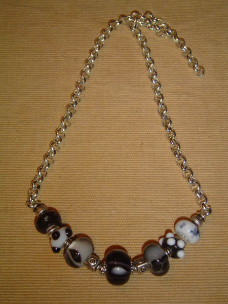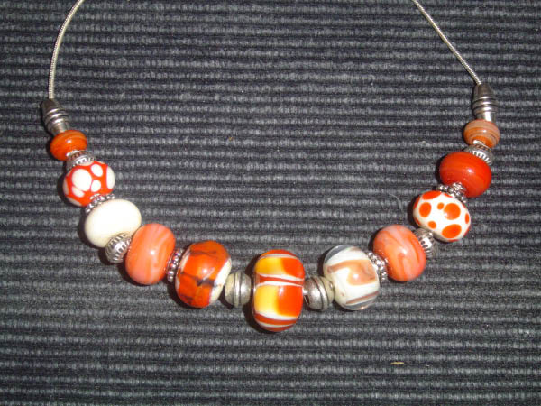 Ik brand mijn eigen glaskralen. Het resultaat is steeds een unieke glaskraal. Het spreekt vanzelf dat de kleurensamenstelling en omvang van de kraal volledig bepaald worden tijdens het branden van de glaskraal. Daarna verwerk ik de kralen in een ketting. Ook hier kan de samenstelling maar ook de lengte natuurlijk helemaal zelf bepaald worden. Ook van deze kettingen vindt je hieronder voorbeelden: